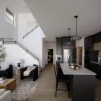 The Brampton offers 1,956 sq. ft. of thoughtfully designed living space that feels bright, open, and made for everyday living. The main floor features a main floor bedroom and full bath — ideal for guests, multi-generational living, or a private retreat. The seamless open-concept layout connects the great room, kitchen, and dining nook in a natural flow, while the open-to-above design adds architectural drama and fills the home with natural light. Step outside onto the deck directly off the main floor, where the walkout extends your living space and brings the outdoors in.