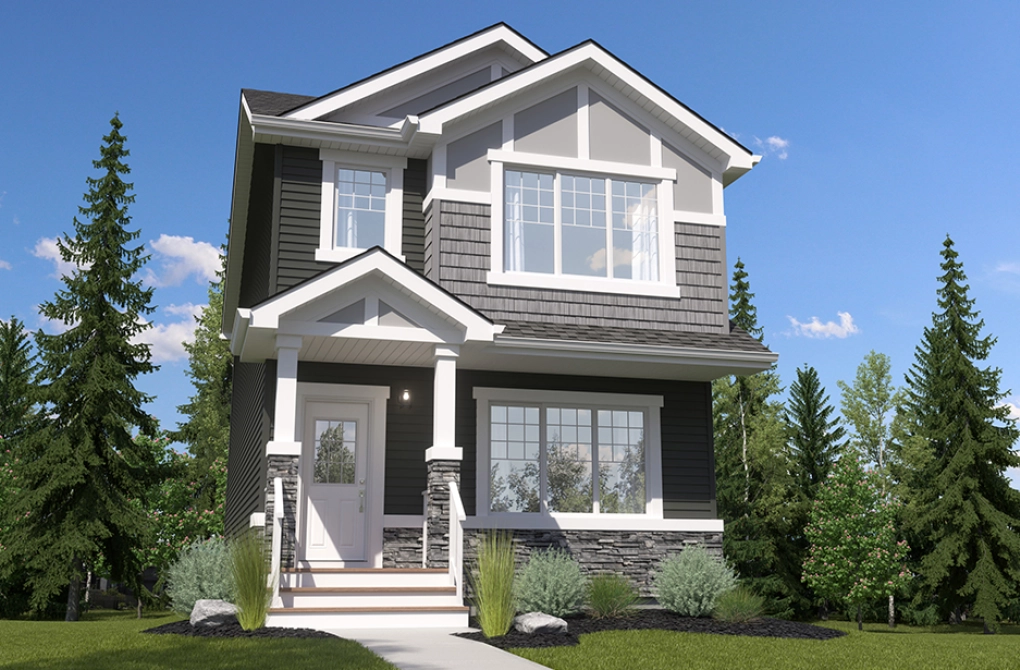 The Tiguan-z II is a 1,707 Sq. Ft. two-storey home featuring 3 bedrooms, 2.5 bathrooms, a bonus room and 9’ main floor ceilings. The foyer leads into a spacious, open-concept great room that allows for designing and decorating freedom. The modern kitchen features plenty of cupboard space, an extended eating bar, a centre island and a nook area for dining purposes. At the rear of the home, find the rear entry and half bathroom tucked away for additional privacy. Upstairs is a central bonus room, 2 bedrooms, a main bath, and laundry for added convenience. The master bedroom has a spacious walk-in closet and accompanying ensuite. Optional side entry is also available for better accessibility.